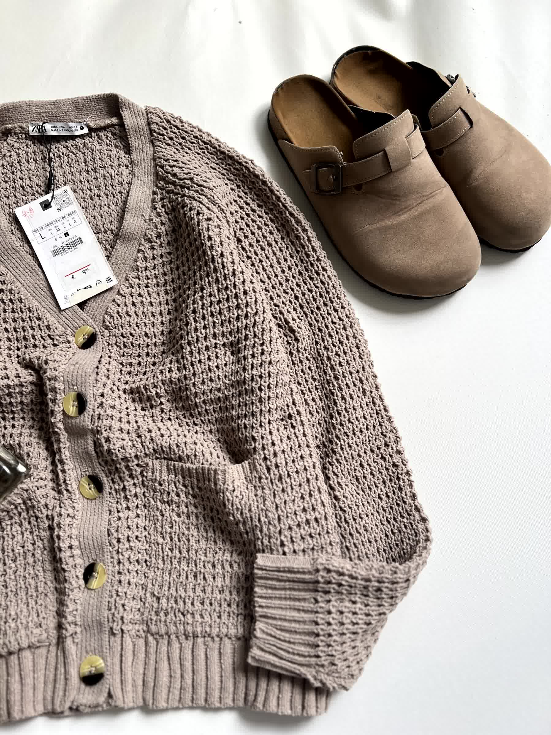 خانه لباس زنانه کاردیگن جیبدار نسکافه ای 0125